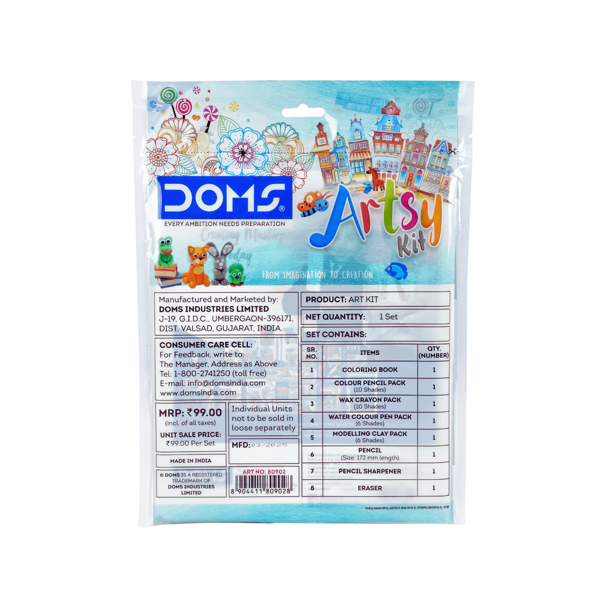 The kit includes high-quality art and stationery items from DOMS, known for vibrant colours, smooth performance, and child-friendly design. It is suitable for activities such as drawing, colouring, basic painting, and DIY art projects, making it a practical choice for classroom sessions, home learning, and structured activity programs.